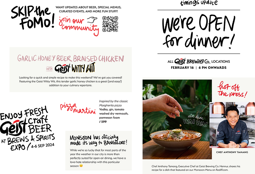 As Geist Brewing Co. expanded into new markets (most recently Kerala), I led the creative development of launch campaigns designed to introduce the brand with clarity, character, and local relevance.